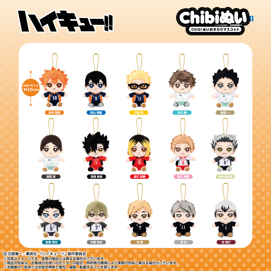 ハイキュー!! Chibiぬいおすわりマスコット ハイキュー!! 2025.04.17 発売日:2025年8月 発売元:バンダイ 参考価格:1980円 <予約&購入> アニメイト メタルボックス コレイズ 楽天市場 <商品情報> 『ハイキュー!! Chibiぬいおすわりマスコット』登場! 2025年8月、ハイキュー!! Chibiぬいおすわりマスコットが発売予定! 可愛すぎるチビキャラクターたちが、おすわりポーズで登場し、ファン必見のアイテムです。 お部屋に飾ったり、コレクションしたり、日常に癒しを加えること間違いなし!