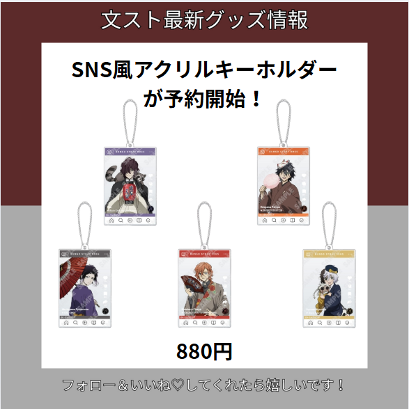 文ストSNS風アクリルキーホルダー 文豪ストレイドッグス 2025.04.22 発売日:2025年6月下旬発売元:アトフェス参考価格:880円 <予約&購入> アニメイト メタルボックス 楽天市場 ネオウィング