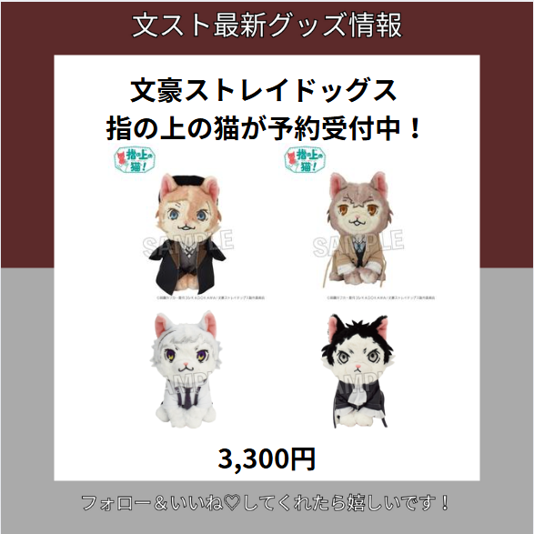 文豪ストレイドッグス 指の上の猫が予約受付中! 文豪ストレイドッグス 2025.04.22 発売日:2025年8月発売元:株式会社PROOF参考価格:3,300円 <予約&購入> アニメイト Amazon あみあみ メタルボックス コレイズ 楽天市場 ネオウィング
